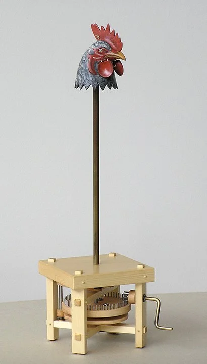 When cranked, the Chicken’s Head snaps back and forth with its comb & wattles moving behind.