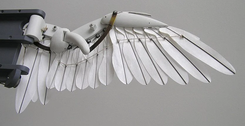 Since these photos & video were taken I’ve once again rebuilt the wing. This time to alter the geometry somewhat for a more accurate position of the primary feathers when closed.