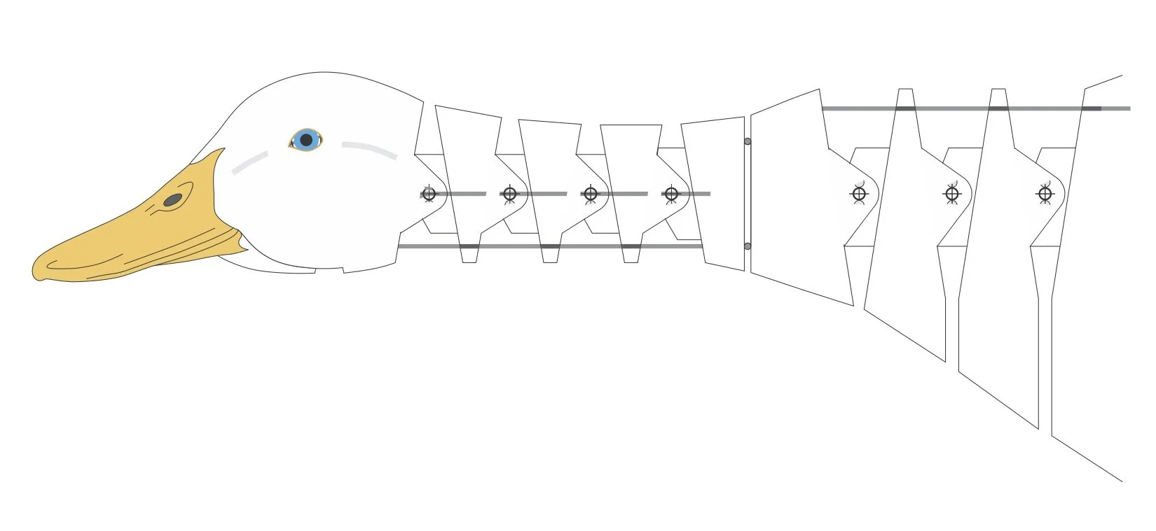 After making most of a prototype for the upper neck, I realized the overall size was too small. I was able to measure a frozen duck specimen at the Burke museum to make sure the proportions & measurements are accurate. Other design changes were made to reflect what I learned building the prototype.